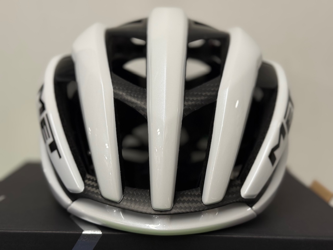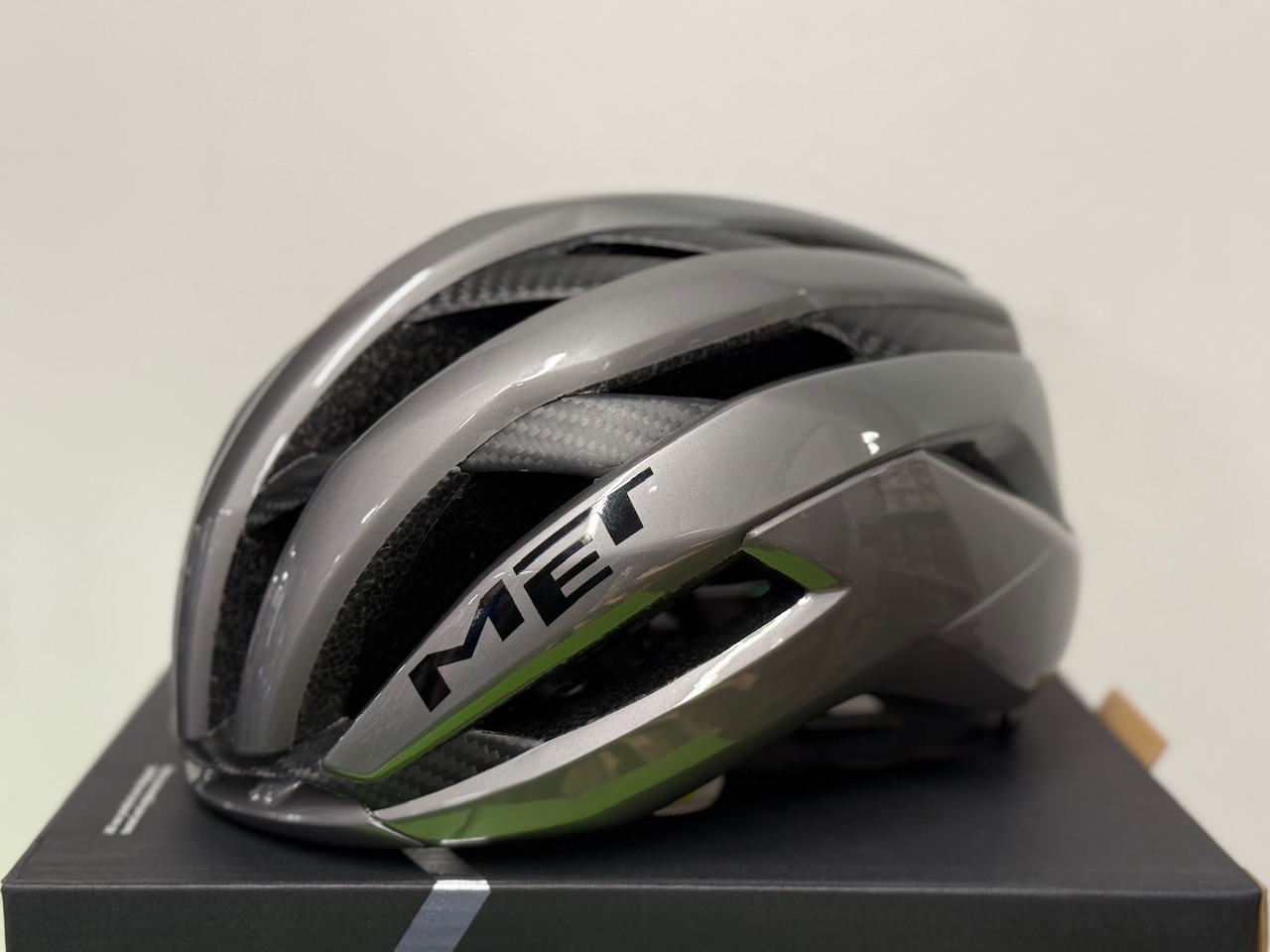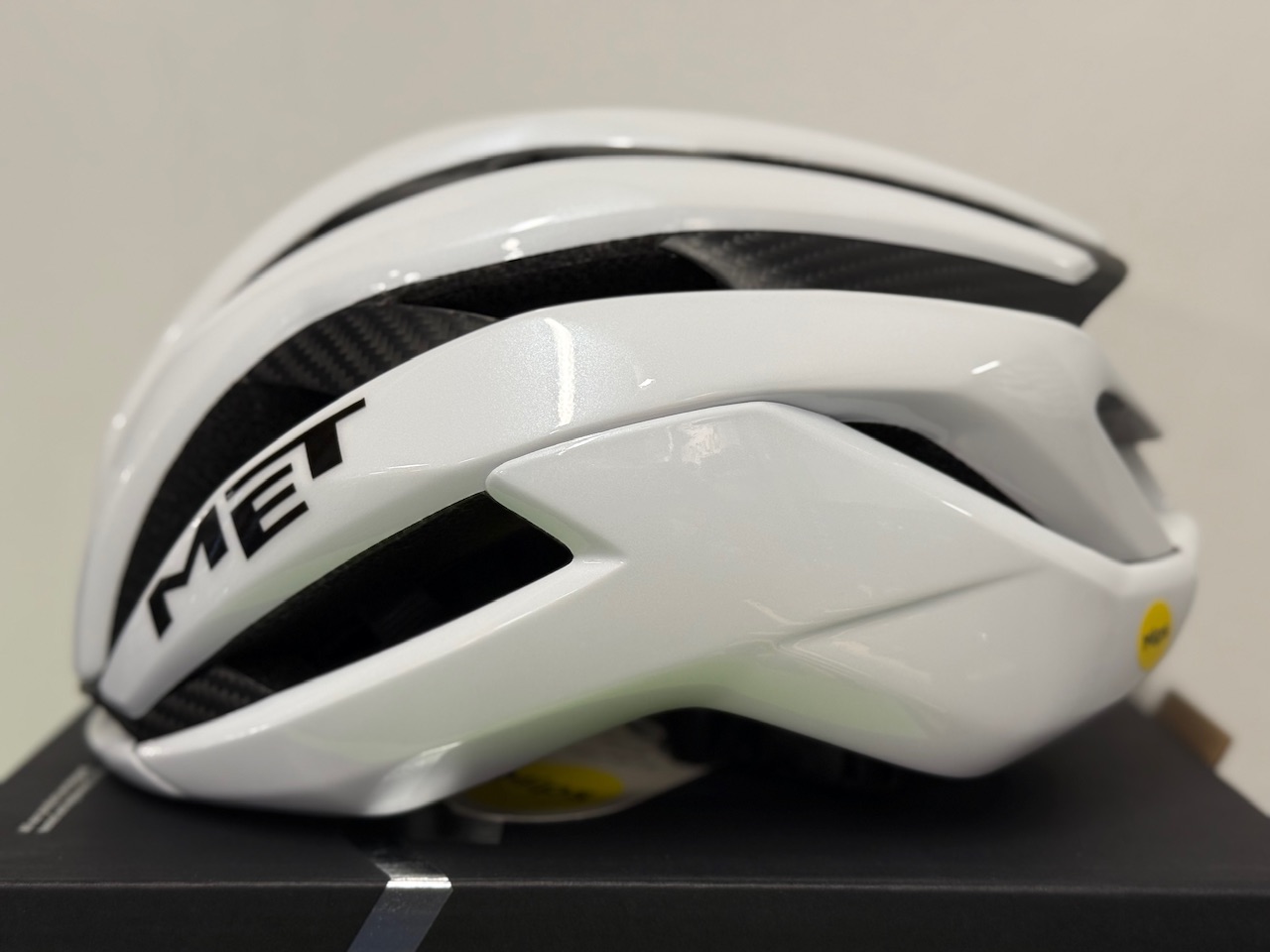METのフラグシップモデル「TRENTA 3k CARBON」です。世界チャンピオンのタデイ・ポガチャル選手や大活躍の若手イサーク・デル・トロ選手が着用しているモデルです。昨年は2人が勝ちまくっていたので目にする機会が多かったと思います。