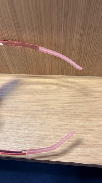 テンプル(つるの部分)は水平方向に自由可動となっており、顔のカーブに合わせて耳当たりをある程度調整できる点もポイント。