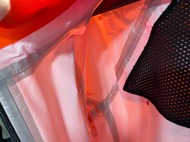 本格レインジャケット仕様なので、シームの防水処理もばっちり。