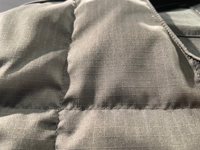 ダウンの表面は丈夫なリップストップ生地を使用し、耐久性もよさげ。