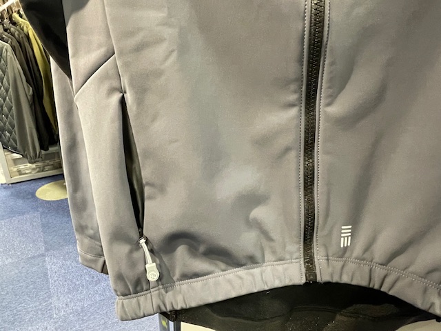 風を受けるフロント面はすべて防風、前述のファスナーがついている下腹部部分も防風ですので、お腹が冷えると不安な方も安心です。