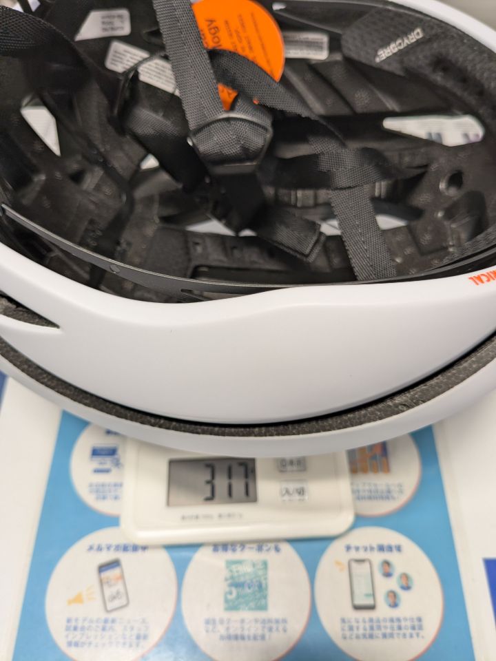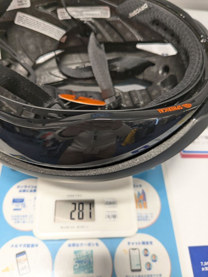 重量もなかなか優秀です。重くなりがちなエアロヘルメットで、Mサイズ280g/Lサイズ320gを実現(カタログ値)。実測値もほぼ同じです。