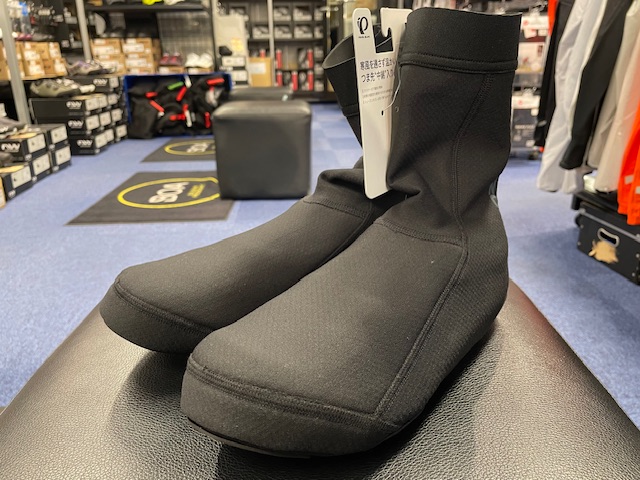 秋口だとシューズの前半分だけをカバーする<トゥカバー>というのも使いますが、今の時期ならシューズ全体から足首までカバーする<シューズカバー(ブーツタイプ)>がメインウェポンです。