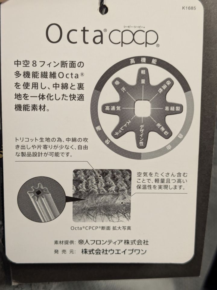 保温性の秘密は帝人フロンティア㈱の「Octa®CPCP®」。