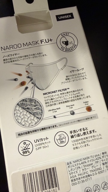 F.U+はNAROO MASK Fシリーズの一つで、普段使いにももってこいのいわゆる普通の耳掛け式マスクとなっています。