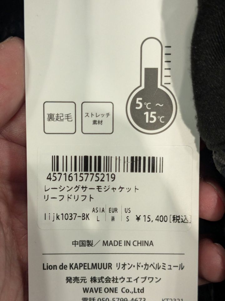 Lion de KAPELMUURブランドになるので、フィット感はピッタリ目、かつ対応気温は運動強度高めに使った場合とお考え下さい。