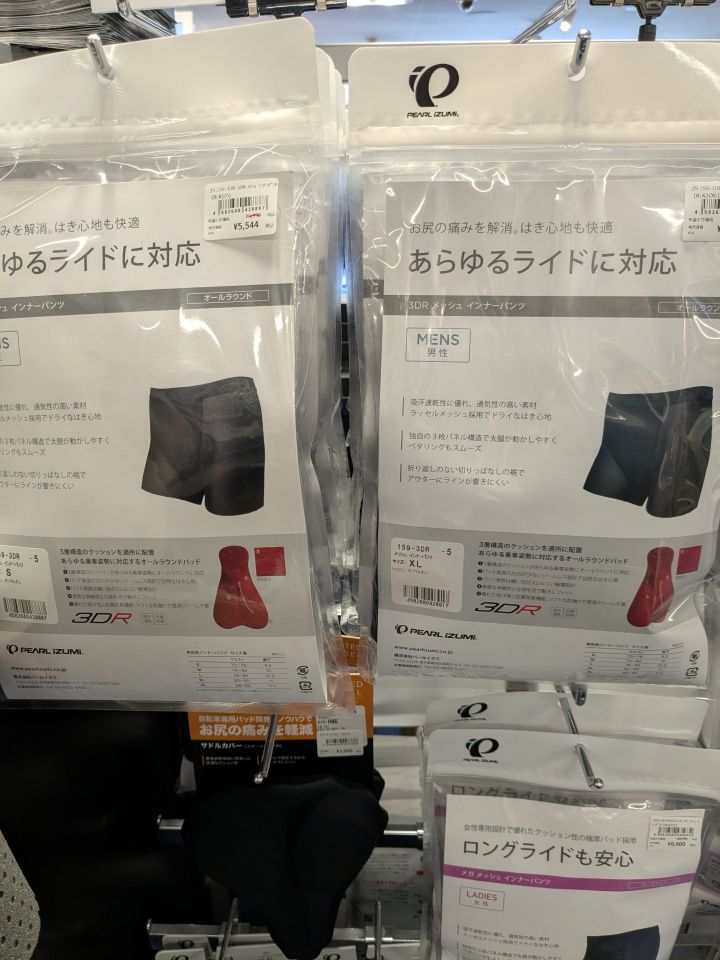 カジュアルウェアでサイクリングするときにお尻の痛みを緩和する、インナーパンツがお買い得になっています。