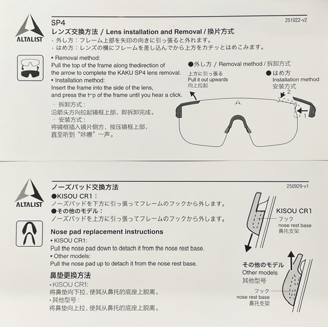 一番わかりやすい付属の説明書 笑で、ノーズパッドの着脱方法と合わせてご覧ください