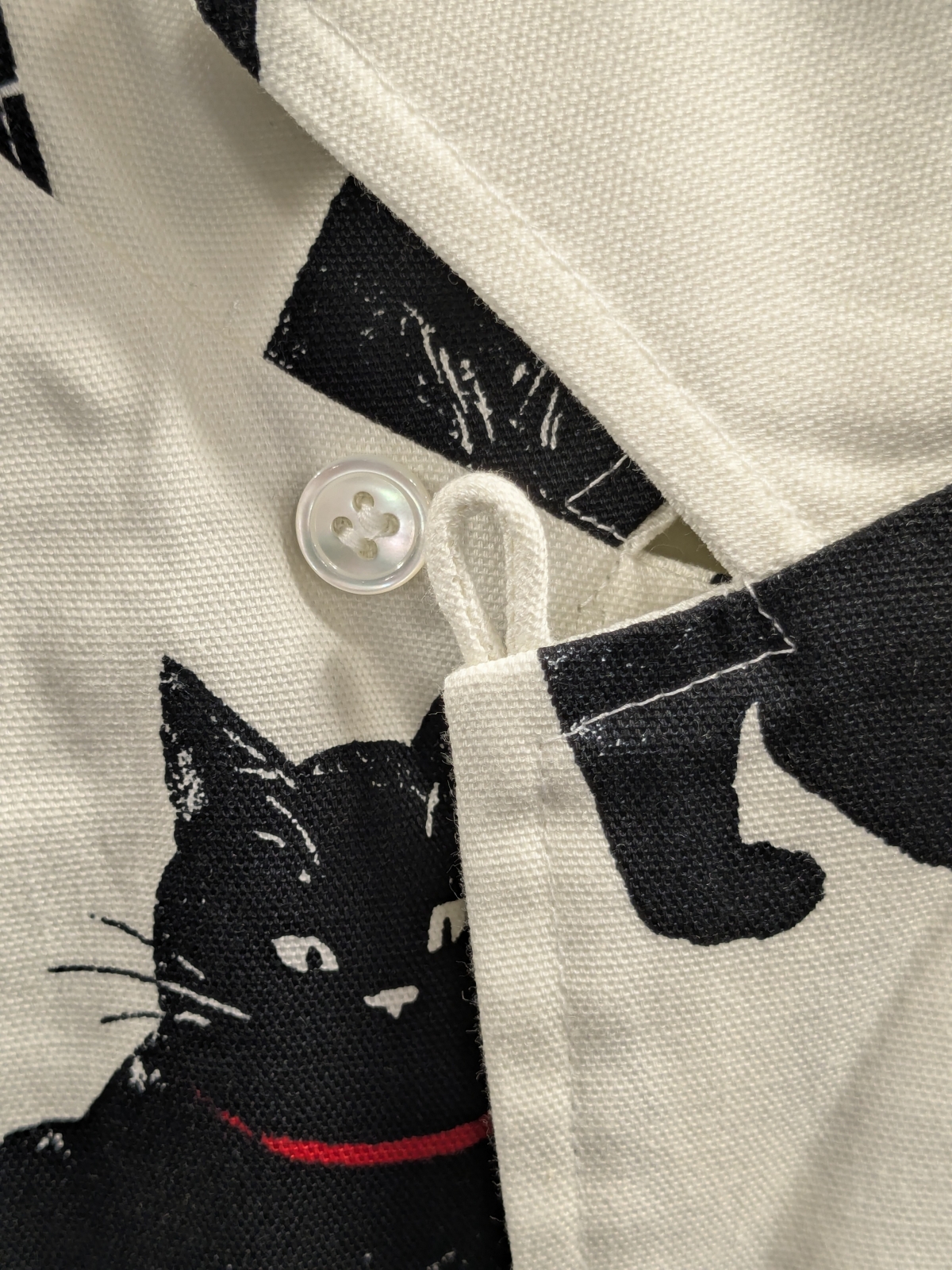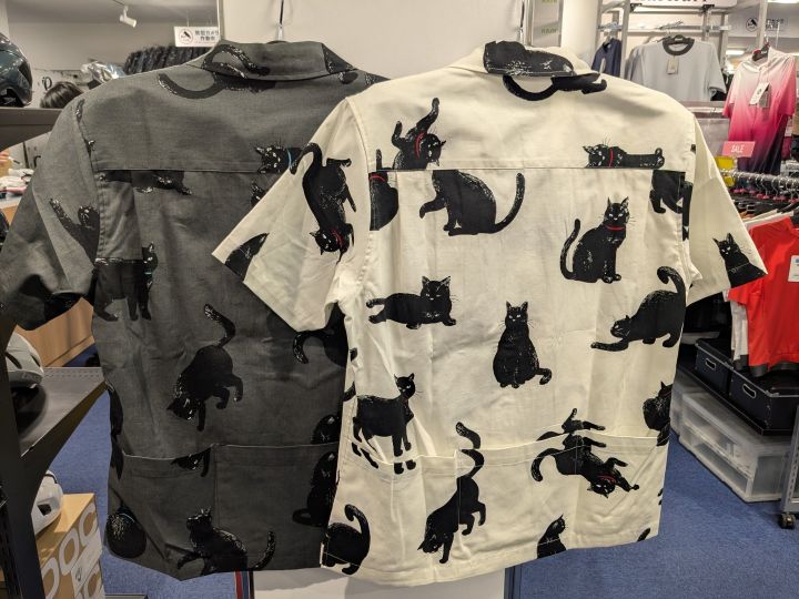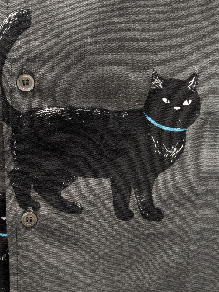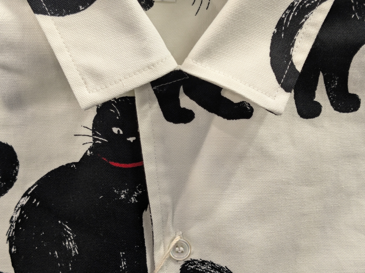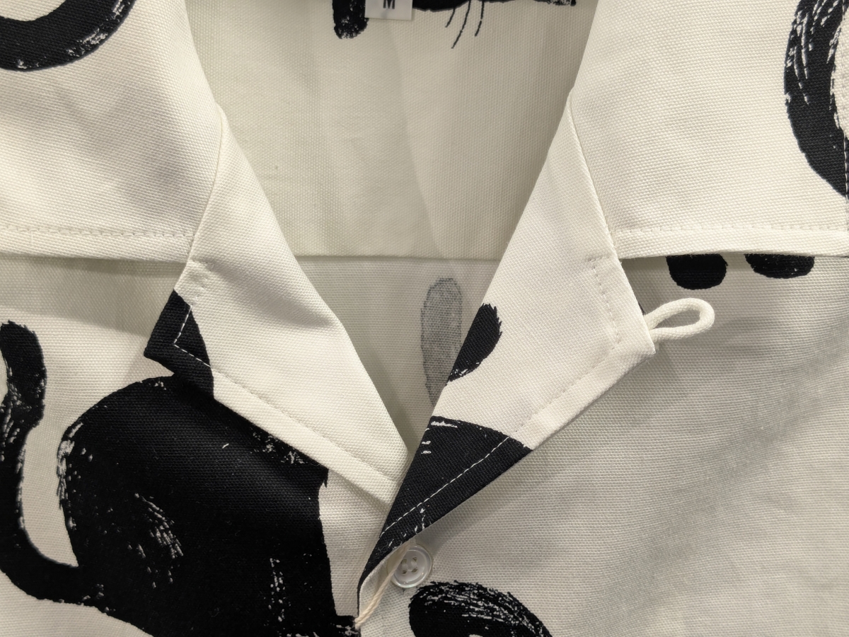 定番商品「サイクリストアロハ」の型に、社名の由来である「黒猫(シャノア)」がプリントされた綿100%の生地が、新しい表情を覗かせてくれます。