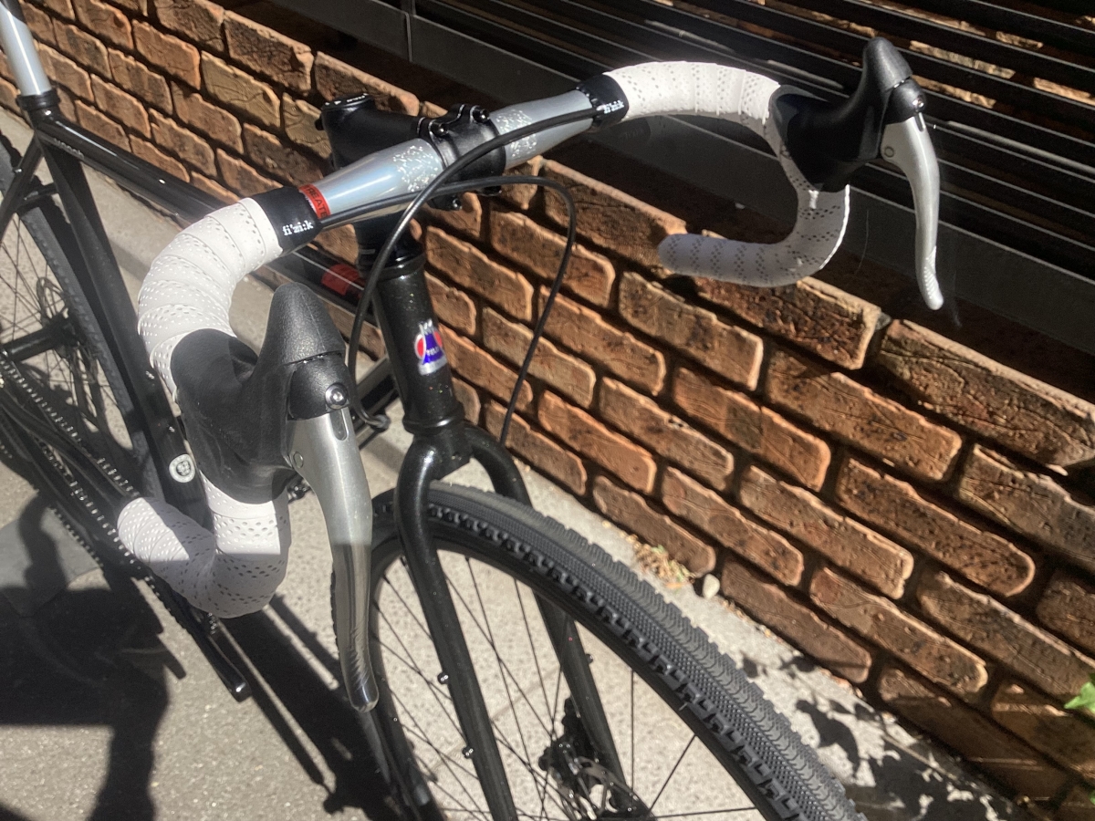 使用したバーテープは定番のFIZIK。黒でシンプルにいくか、明るめの色で遊ぶか迷ったんですが、フレームのロゴの色に合わせて白にしてみました。