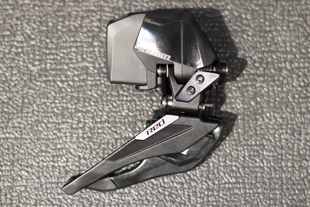 FDの大きな進化として挙げられるのは、リア側のチェーン位置に合わせて自動で移動する、オートトリム機能が備わったこと。ケージ部分が狭くなったことでチェーンを押し上げるスピードが上がった他、SRAMユーザーの悩みの種だったチェーン落ちのしやすさも改善されているようです。オートトリムはシマノ電動コンポでは以前から当たり前にあった機能ですが、今回のモデルチェンジによって両者のFD変速性能差は限りなく小さくなった印象です。