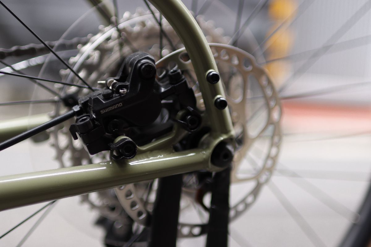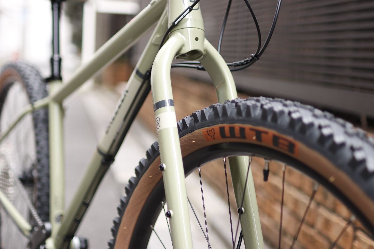 現代的なストレートフォークで、スルーアクスル、テーパーコラム、キャリアやラゲッジ装備可能なダボ穴ももちろん開いて、ガチオフロードから緩めのツーリング、街乗りにもと様々なフィールドで活躍してくれます!