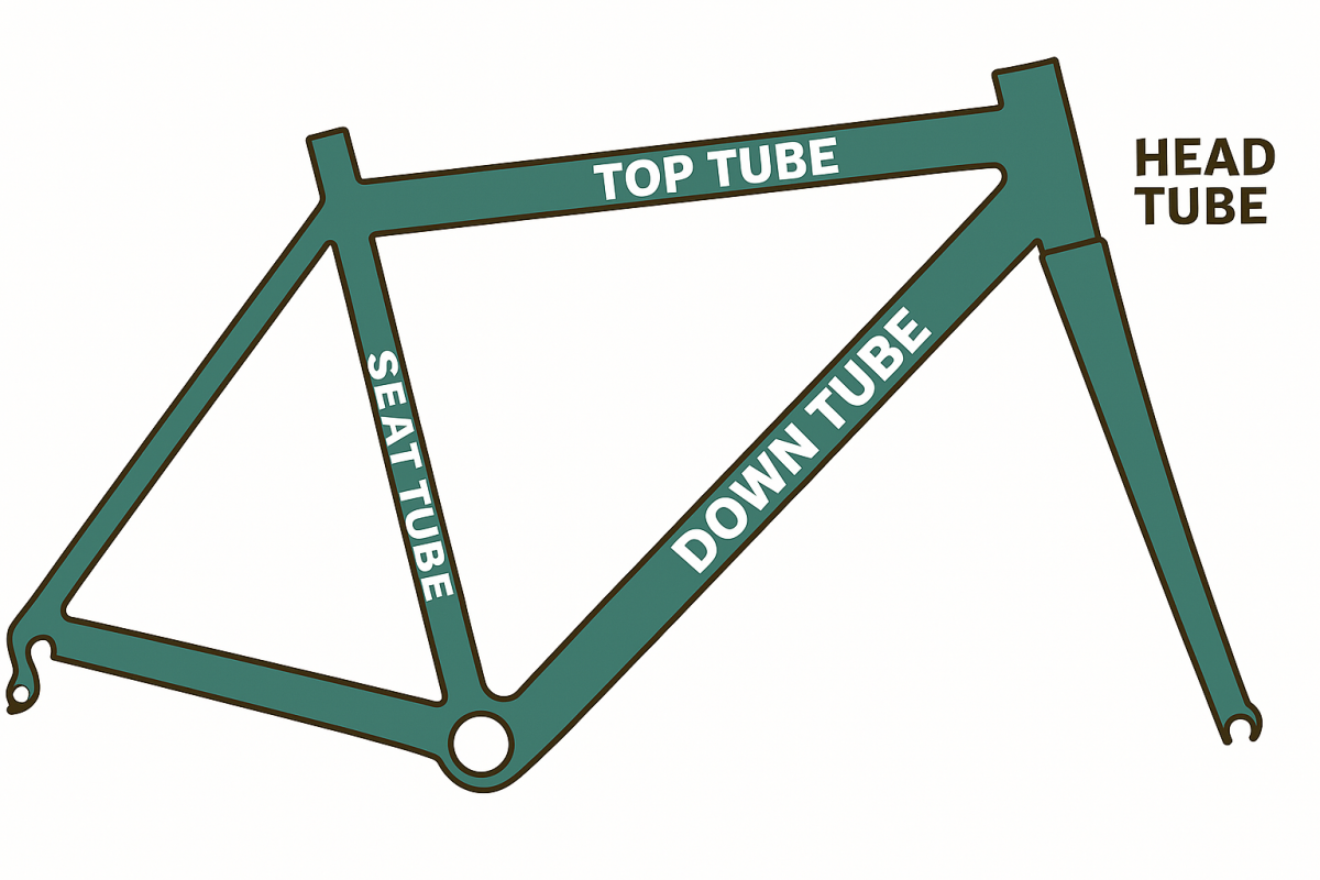 サイズが大きくなると、簡単に言うとフレームの前三角形の大きさが変わります。トップチューブ・シートチューブ・ヘッドチューブの長さが変わるとどんな問題が起きるかというと、例えば体に対して大きいフレームサイズを選んだ場合