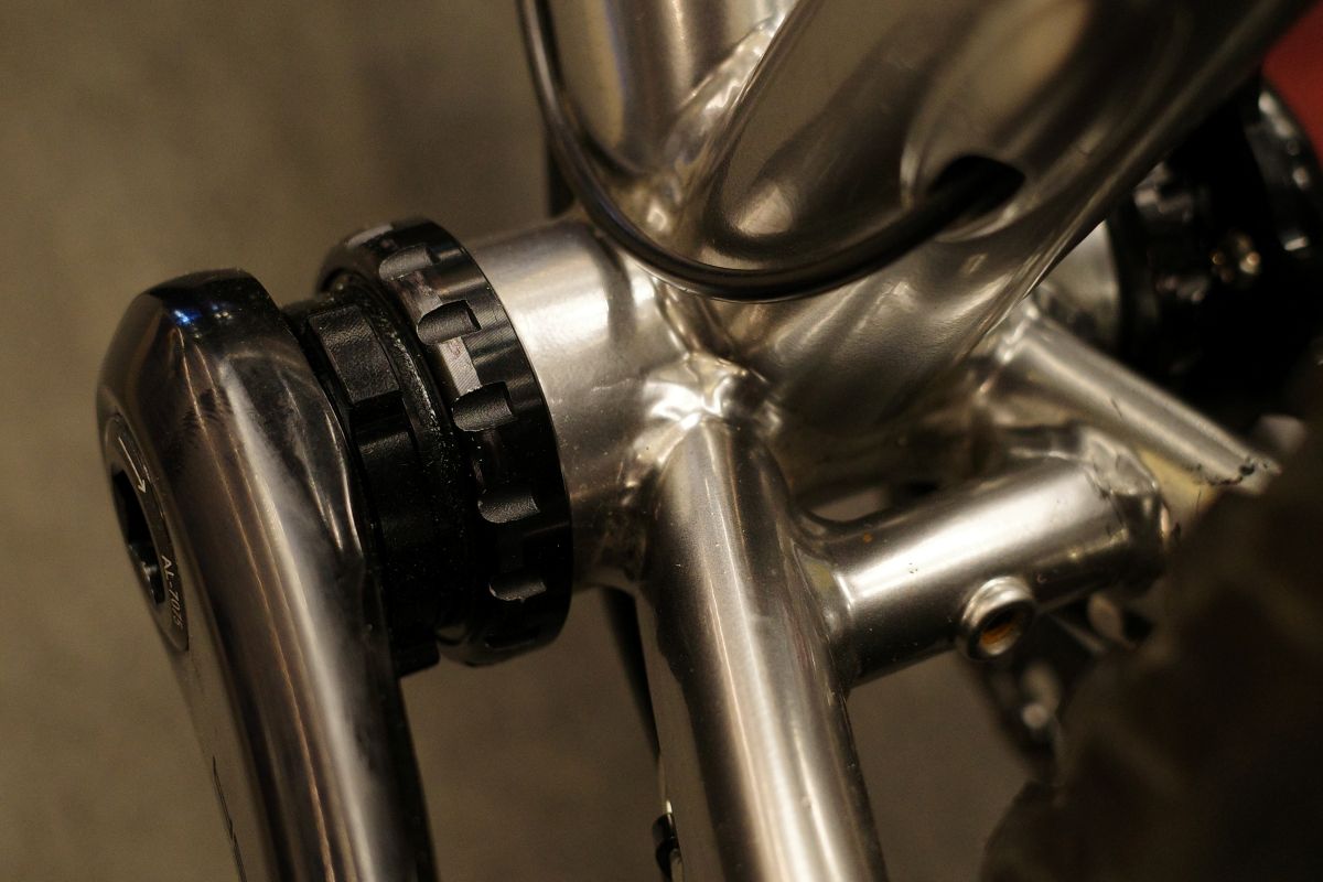 完成車オリジナルのFSAクランクから、更なる剛性アップ、チェーントラブル回避、若干の軽量化を狙ってのカスタムです。
