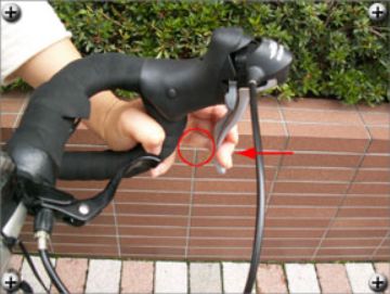 ブレーキレバーの引きしろが適切かどうか、をチェックします。