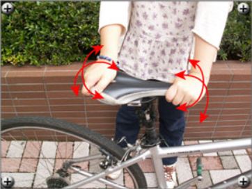 サドルを掴んで前後左右にねじってみましょう。ガタつきが無く・曲がったりしなければOKです。