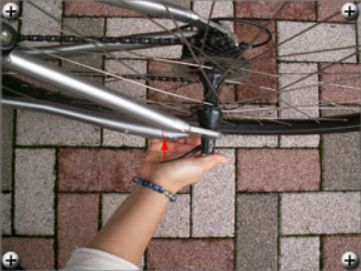 クイックリリースの場合はレバーがしっかり固定されているか素手でチェック。スルーアクスルの場合は付属のレバー、付属していない場合は六角レンチでチェックします。