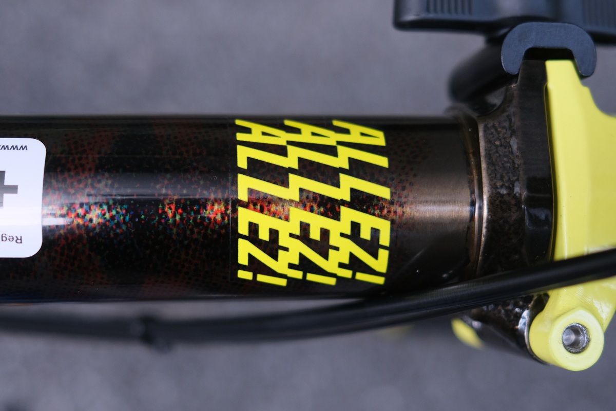 レース応援の定番掛け声「ALLEZ」(行け!がんばれ!といった意味合い)をメインフレーム前部に配置。乗り手が走行中に視線を落とせばすぐ目に留まり、ツール選手のように励まされる、というわけです。