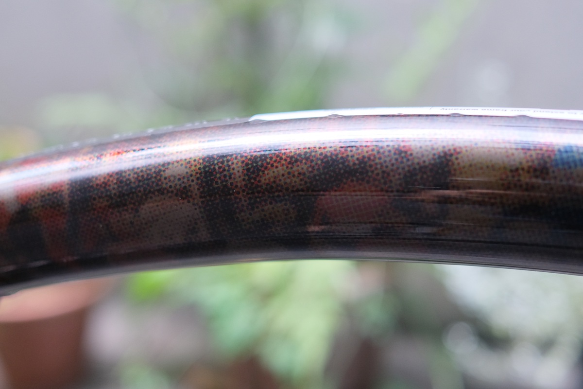 デザイン転写前のベース仕上げは、定番ラインナップのブラックラッカー。手間暇かけて美しく仕上げられた溶接部が透けて見える、特別仕様の人気色です。