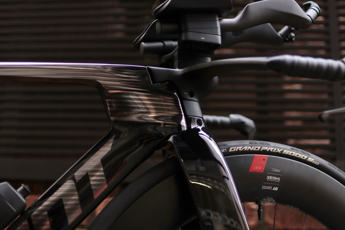 他社のTTバイクのようなボリューム感に振った見た目というより軽量性に富んでいるビジュアルですが、ロードバイクと比較できない巡行性能とエアロ性能を体感できます。