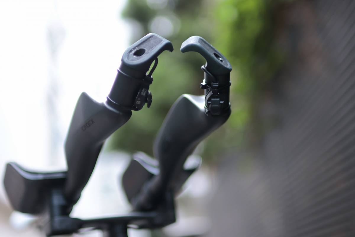 自作のエンドフックを取付けて握りやすくしています。(UCI的にはアウトですが認証レースもJBCFも走らない自分には関係ありません)