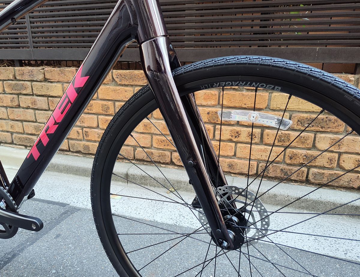 「FX3」からフロントフォークがカーボン製に変わり、軽量化と振動吸収性の向上に貢献します。