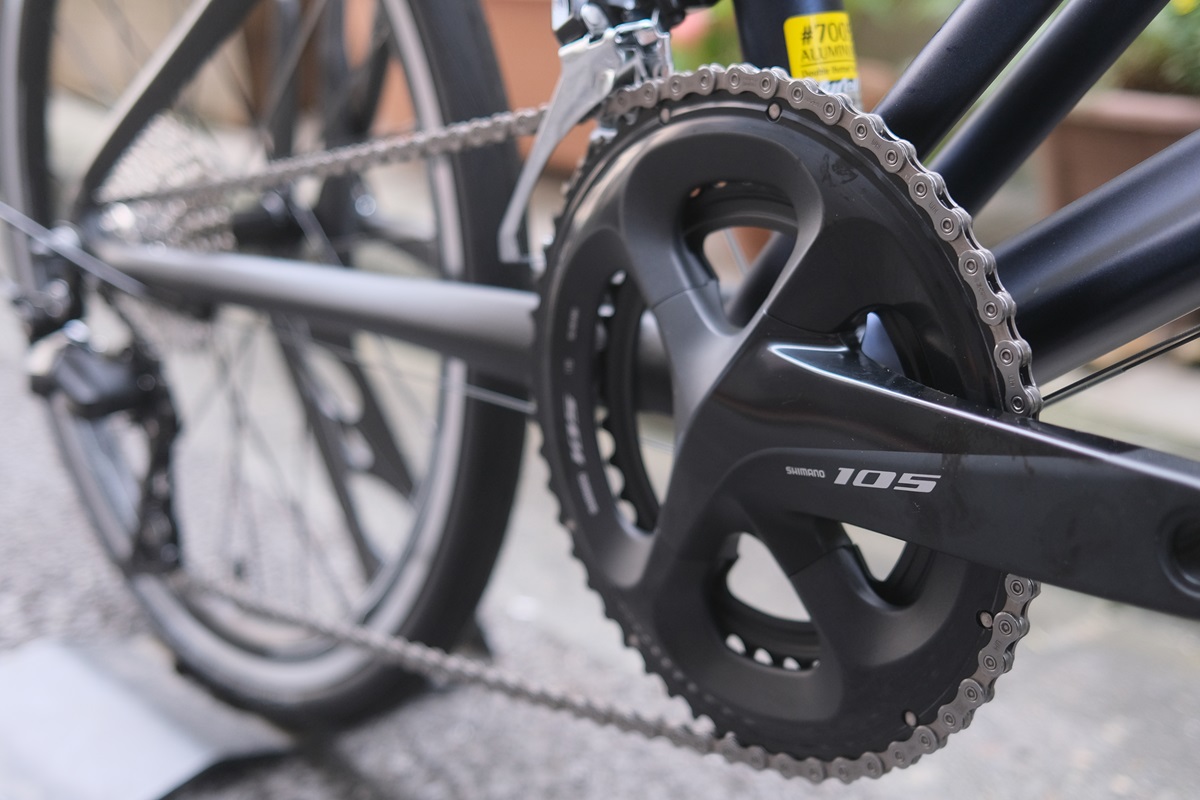 コストパフォーマンスと安定感のバランスに優れるシマノ105コンポーネントを搭載。ロードバイクな走りをしっかり支えます。