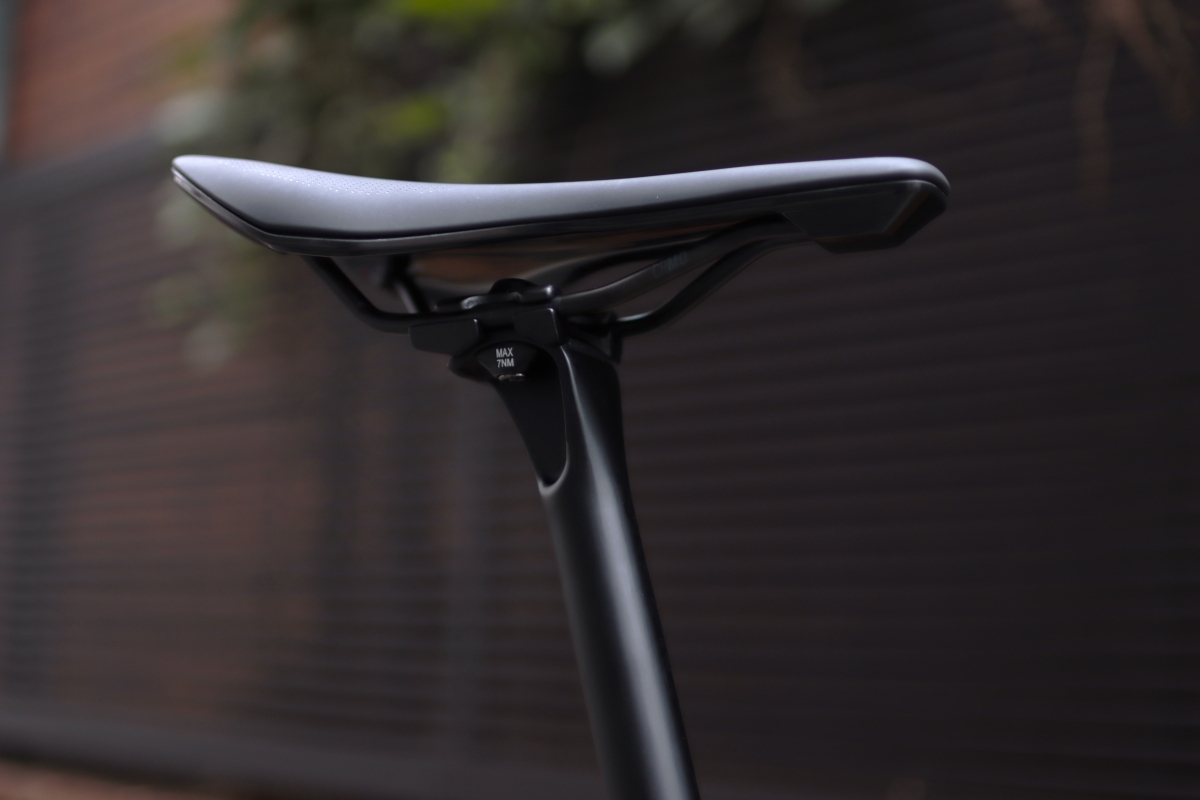 座り心地の良さそうなサドルとカーボンシートポストを搭載。