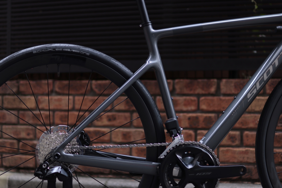 SCOTTの「ADDICT 30」は32Cの太いタイヤと電動変速の105Di2を装備したグランフォンドバイクです。