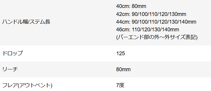 豊富なステム長とハンドル幅の組み合わせからお選びいただけます。店頭バイオレーサーによる測定で適正サイズをご案内させていただきます。