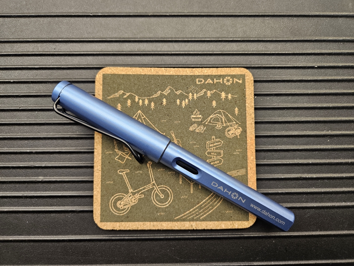 DAHONのロゴ入りボールペン&コースター、ともに非売品です!