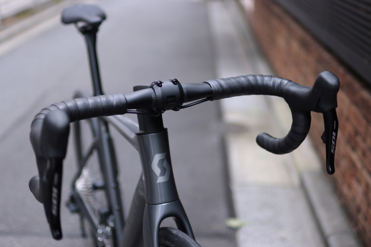 フレームはもちろんのこと、「ハンドル ホイール シートポスト」に至るまでオリジナルブランドのSYNCROSのカーボンパーツで統一されており軽量性と快適性が極まっています。