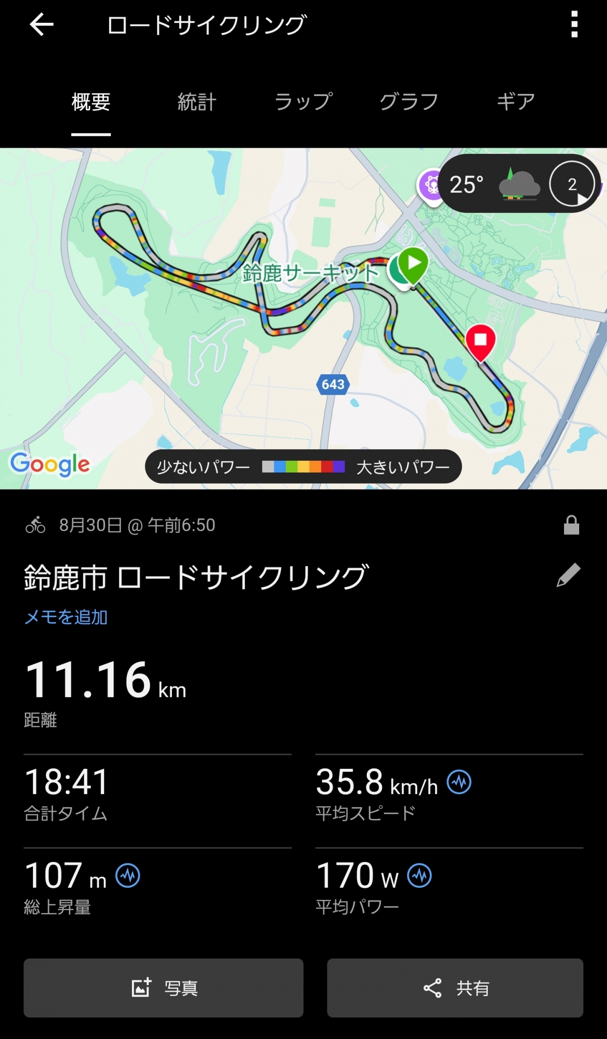 スタートしてから始めのコーナーまでに190bpmまで上げ、終始無酸素領域で強い走りができたと思います。