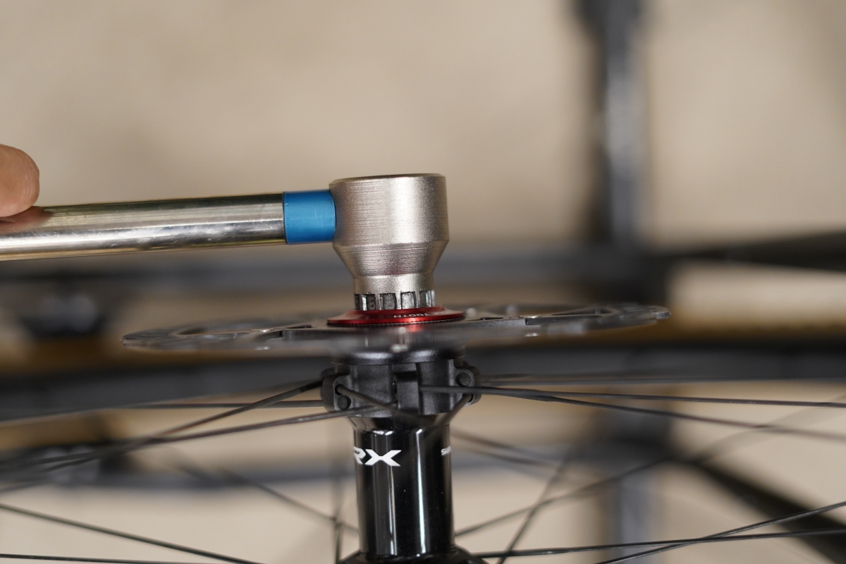 シマノ純正品と同じようにロックリング工具で取り付け。中央部が膨らんでいるため工具の掛かりがよく、ナメにくくしっかりと締められます。