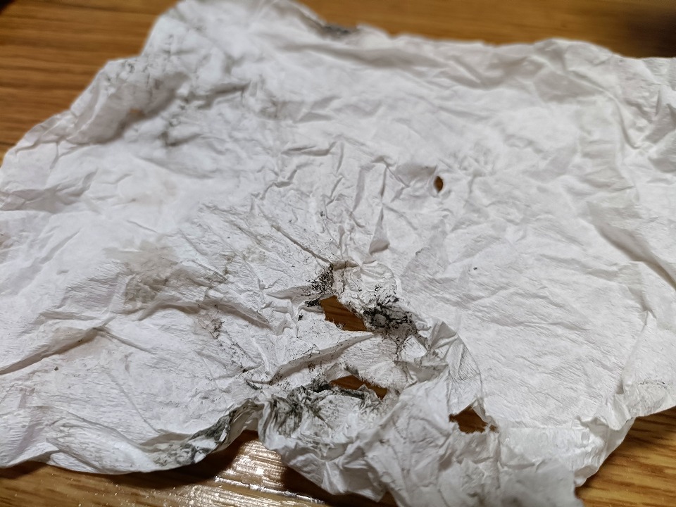 ティッシュで軽く拭き取るだけでこんなに汚れがとれます。