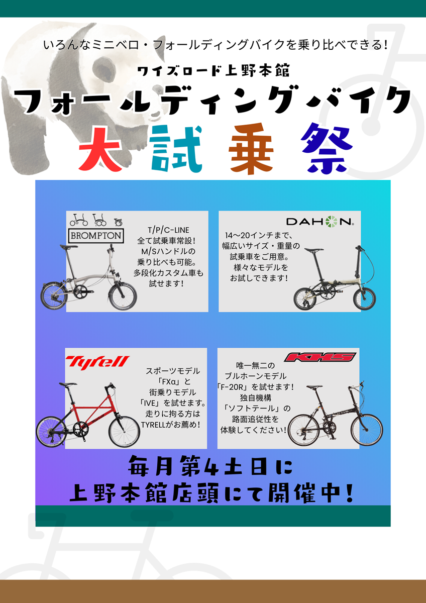この週末、上野本館にて、様々な折り畳み自転車の走り心地を比較してお試し頂ける試乗祭を開催致します!
