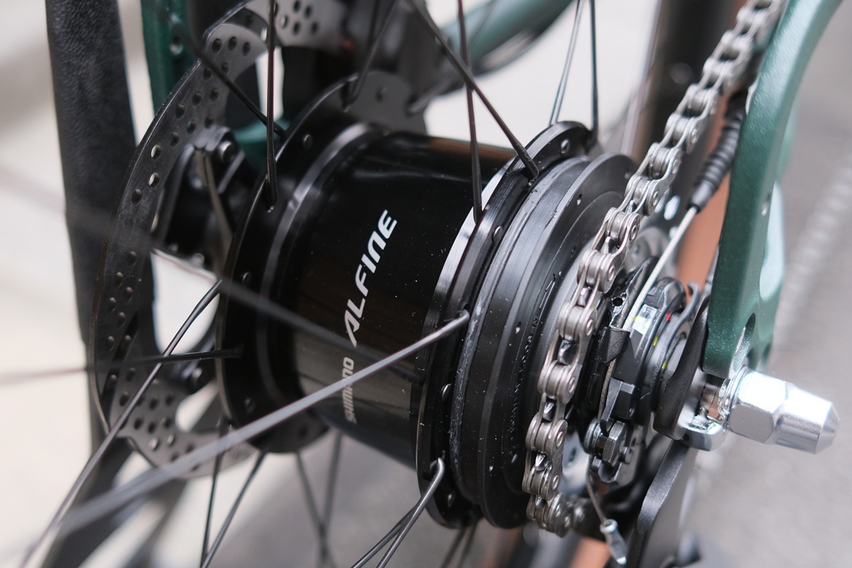 シマノAlfine内装8速を採用、右シフトレバーのみのシンプル操作で8段の細やかな変速を使えるようになりました。
