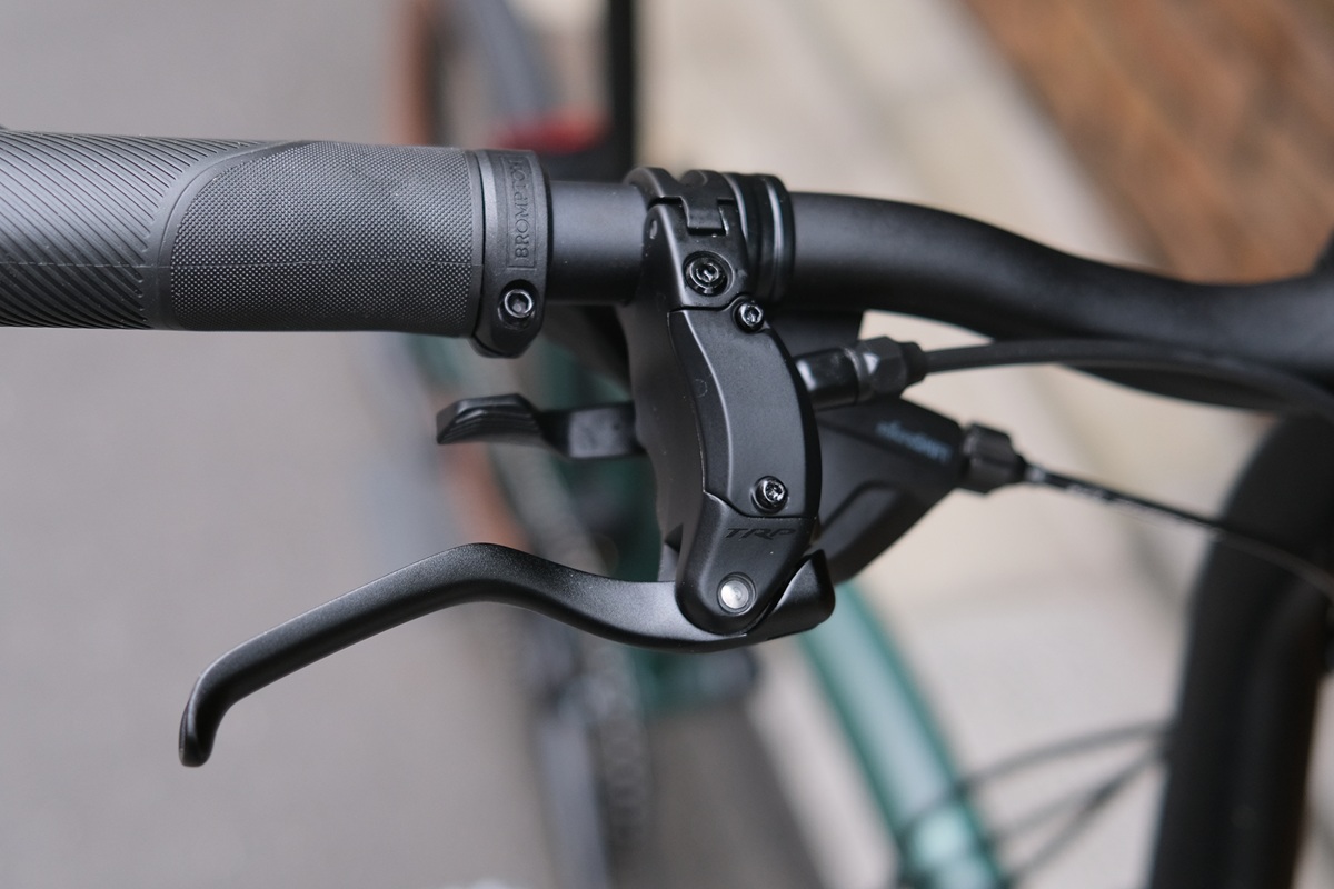 リムブレーキ → TRPの油圧ディスクブレーキへと変更。これによって引きの軽さ、雨天での制動力の安心感アップ、リムブレーキ特有の摩擦熱での高温化によるパンクの心配無用、など、より快適な走りを実現しました。