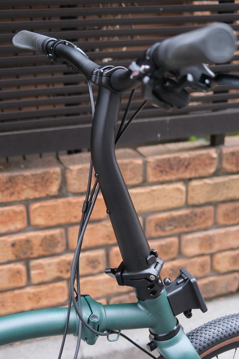 一般的に、折り畳み自転車は強度の関係から荒れた道の走行は避けるように言われることが殆どです。それがBROMPTONですと、従来モデルで既に耐荷重110kgという耐久性が高い設計を持っていたため、グラベルテイストを付加することでオールラウンドな走破性を実現しました。
