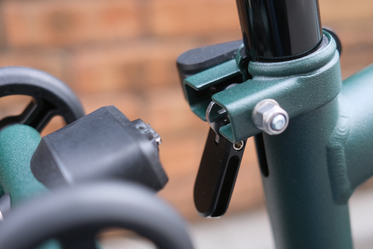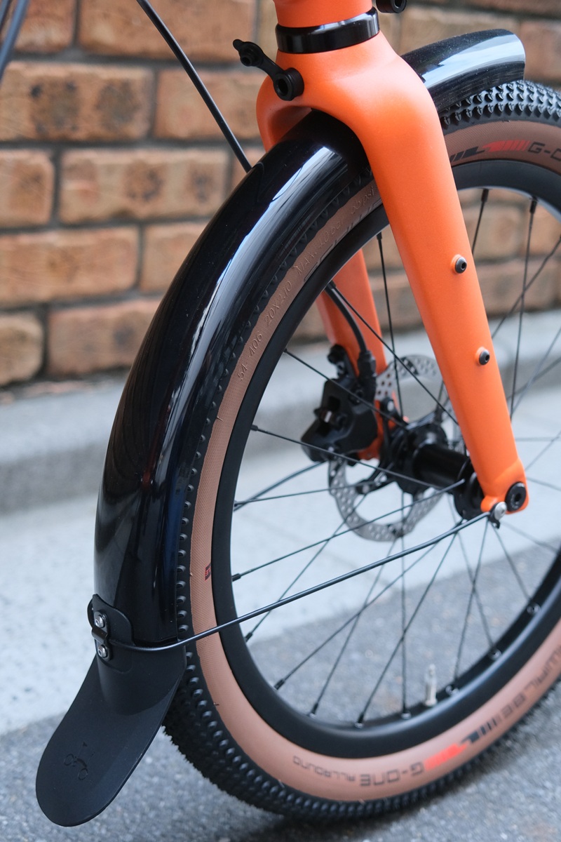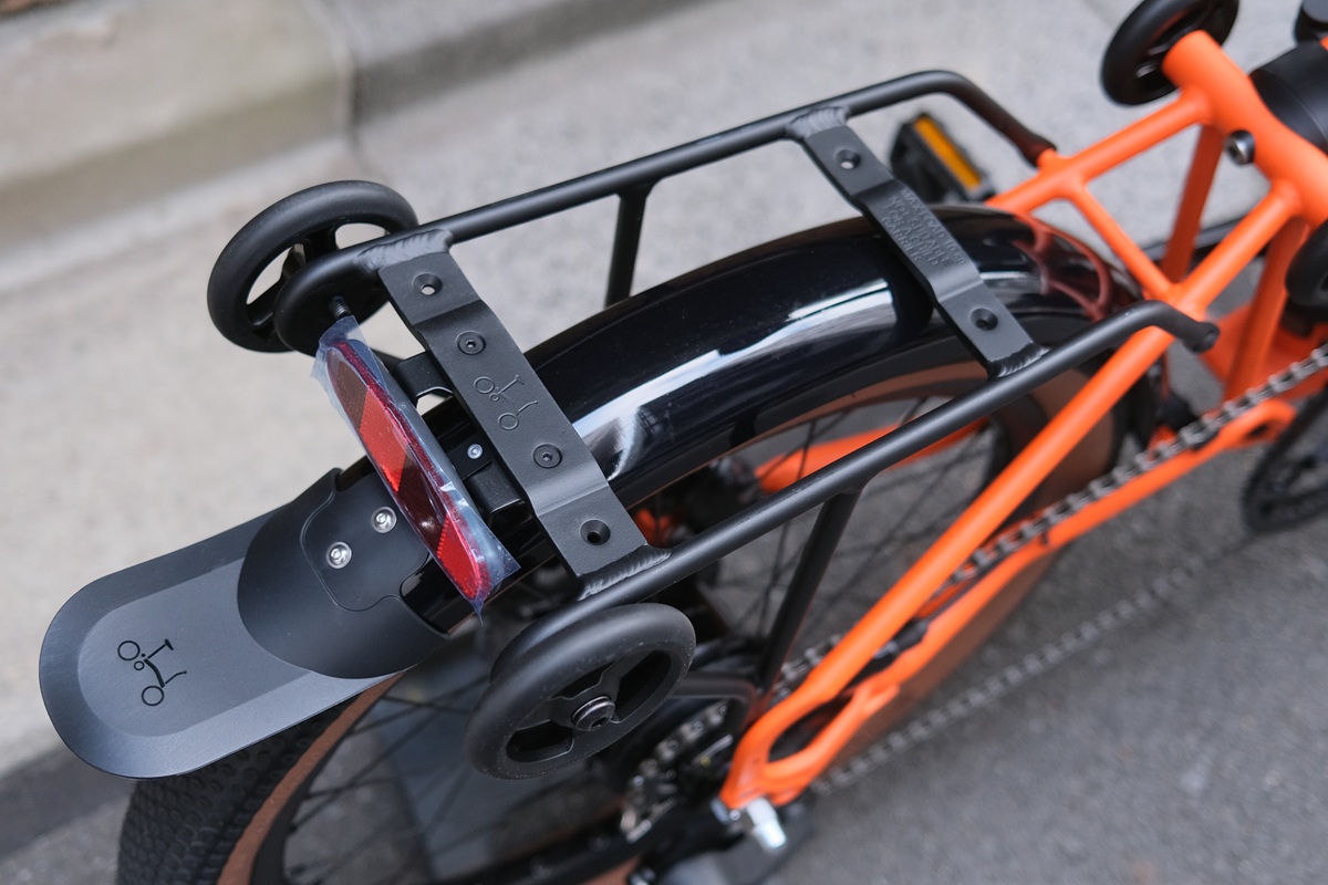 G Line専用のラックとフェンダー。お好みに応じて有り、無しが選べるよう、両方の仕様が展開されます。尚、フェンダーはラックにぶら下がるように取り付ける方式のみのため、従来のBROMPTONのようにフェンダーのみ取り付けでラックは無し、という仕様には出来ないようになっています。
