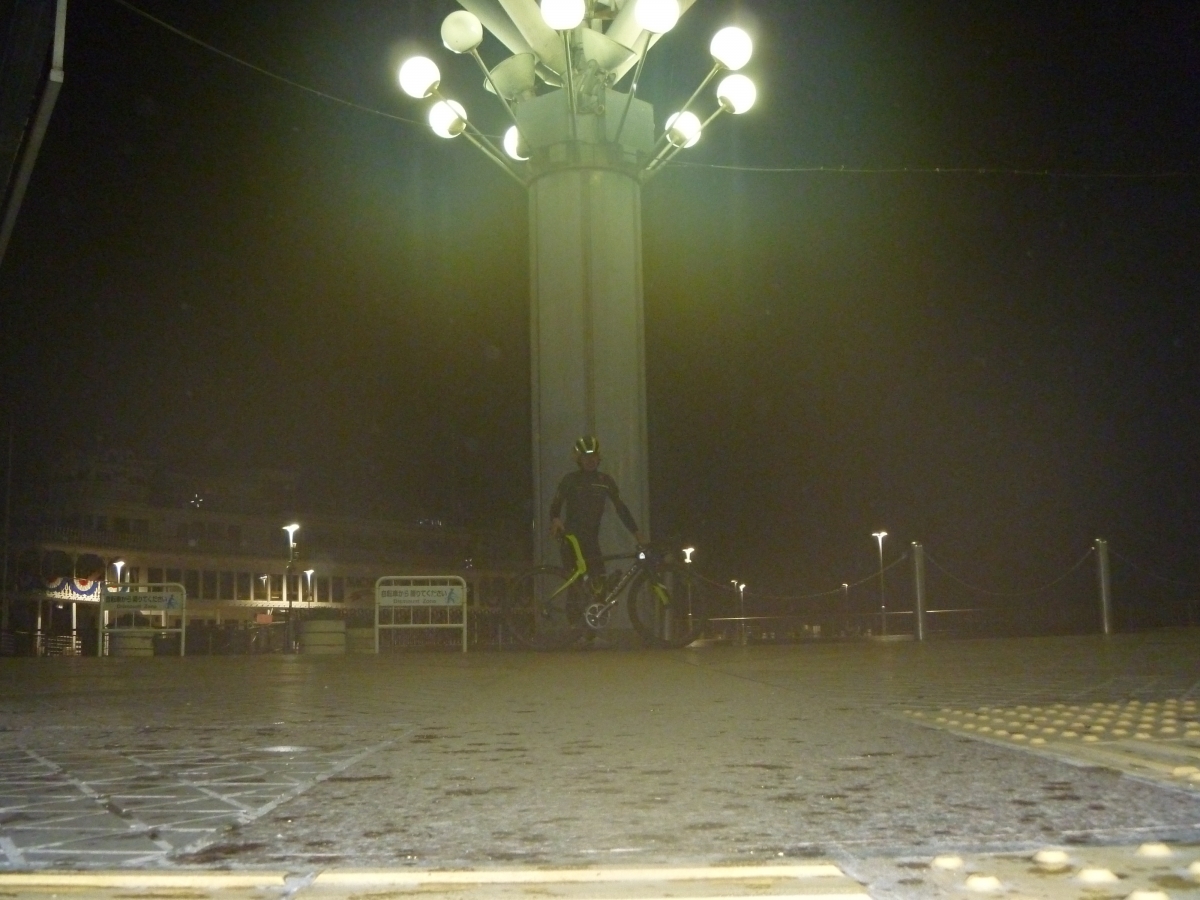雨×カーボンリム×リムブレーキのまったく効かないブレーキに気を遣いながらストップアンドゴーを繰り返し、スタートの段階ですでに見えていたゴール近くの建物が見えた瞬間「無事に終わった」と安心感に身を包まれました。