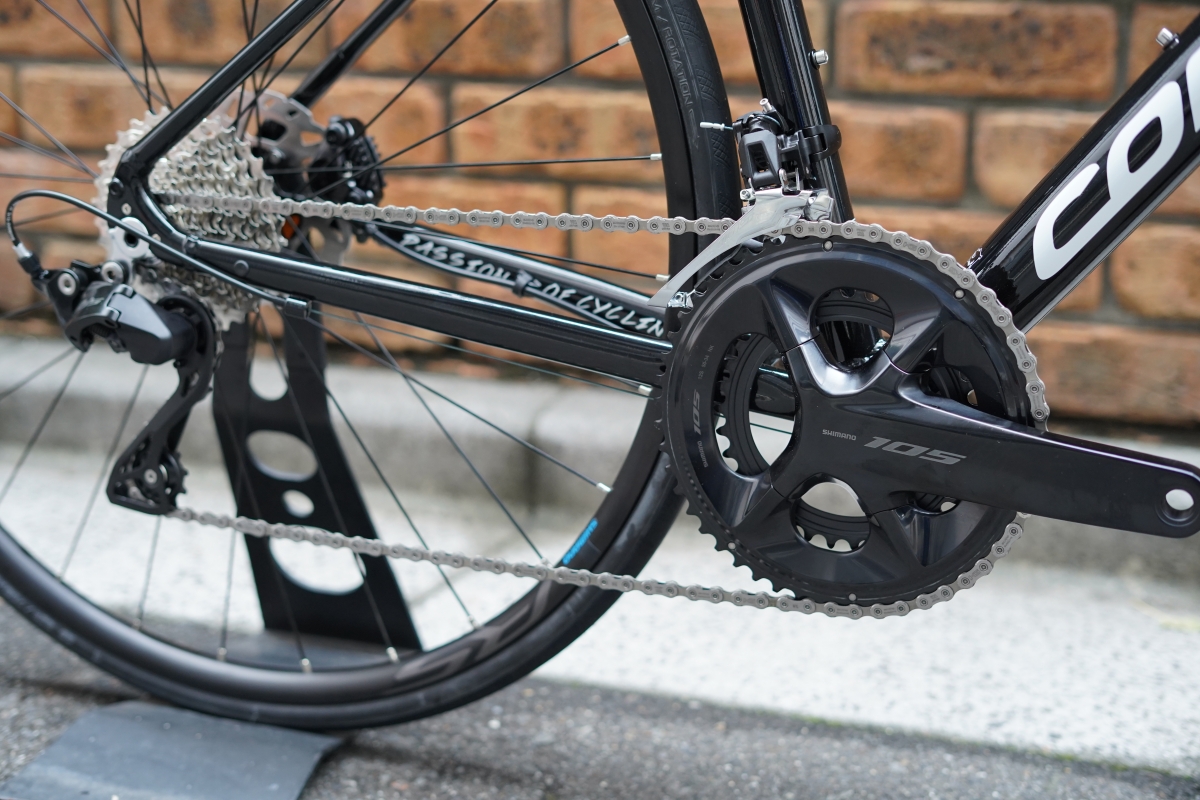 クランクまできちんと最新の105コンポーネントを採用しています。変速性能・操作感の良さが際立ちます。