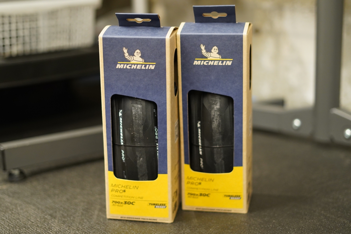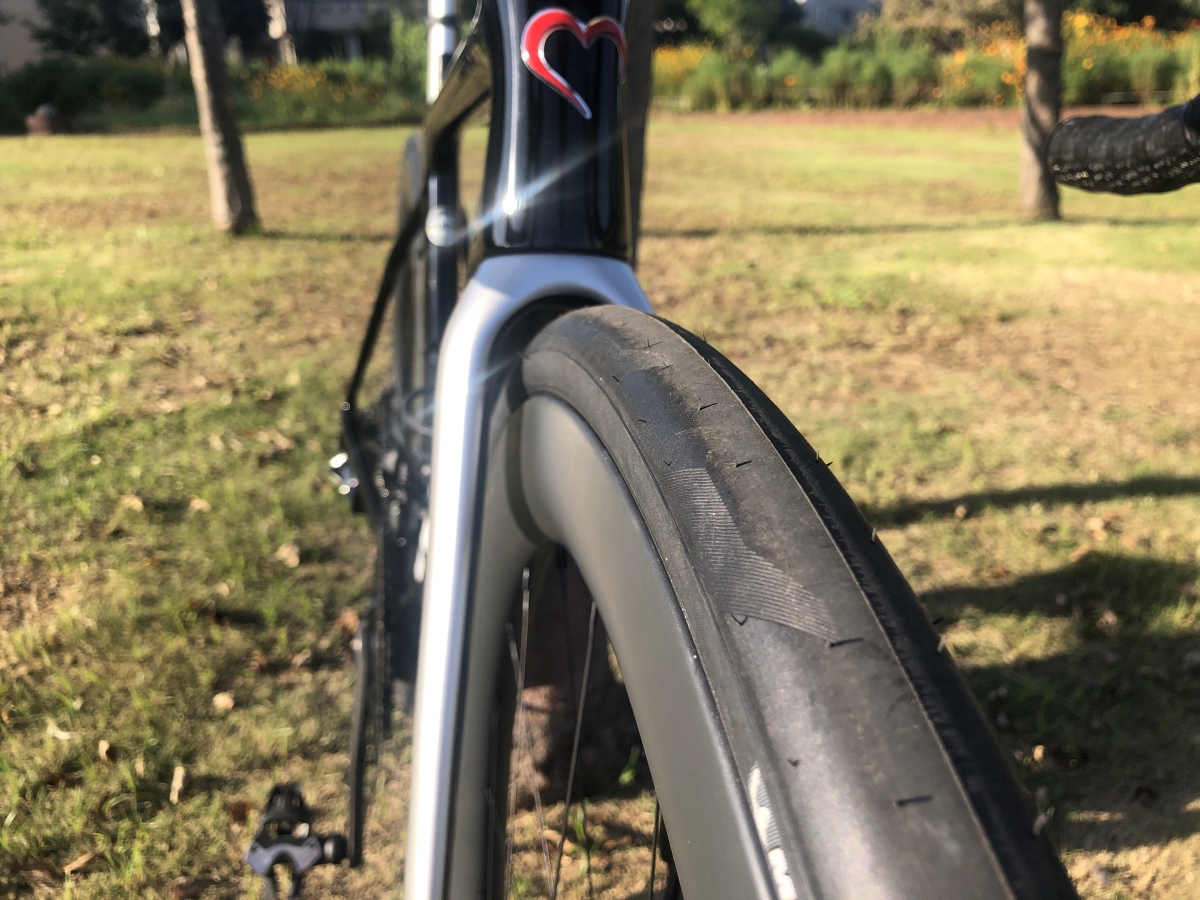 組み合わせたのはミシュランの新型タイヤ「PRO 5」。レーシングモデルのPOWER CUPに対して、耐久性重視のエンデュランスモデルという位置付けですが、転がり抵抗も低く抑えられており、レースでの使用にも堪える性能を持っている、総合力の高いタイヤです。サイズは30Cを選択。