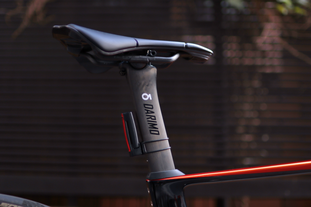軽量化にこだわりたい方はDARIMO製シートポスト(¥74,140)へのカスタムも承ります。クランプ部を含めても350mmでわずか107gしかなく、純正品に比べて約100g近くもの軽量化になります。