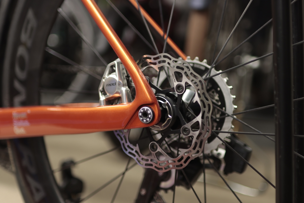 更にディレイラーハンガーをSILCAの3Dプリントチタンハンガーに交換しています。これは軽量化の効果はそれほどではないものの、変速時ディレイラーの剛性を高め、クラッシュ時の安全性を高めることに繋がります。