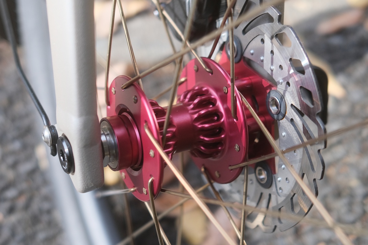 そこにGOKISOハブというのが、実に相性が良い!滑らかに、伸びる、伸びる、伸びる!回転部分に濡れた氷が入っているかの如く、ツル~ッと回っていきます。表現力が乏しいがために「滑らか」「伸びる」といったありきたりな言葉しか出てこないのですが、その領域が、感動ものの域に達しているのです。これはもはや不立文字、機会があれば、ぜひ試してみて頂きたい滑らかさです!「高性能回転」というと、つい高速、レース、という方向に考えがちですが、さにあらず。クルージングを、より快適に!回転数の多い小径車輪ならば尚更、その恩恵は大きなものとなります。いや~、G Line × GOKISOハブ、病みつきになりそうなマリアージュでした!