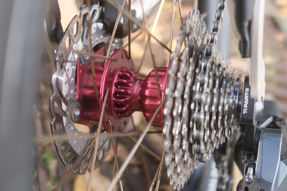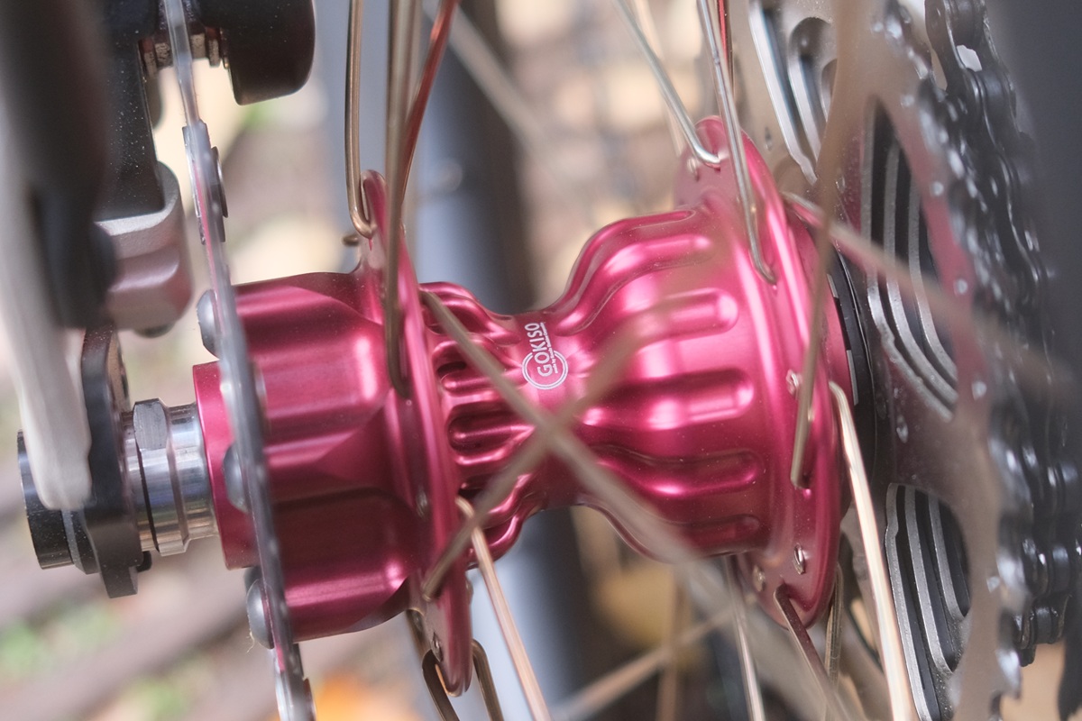リアハブは、G Line標準だとシマノALFINE内装8速が付いてきますが、GOKISOロードハブが入ったのに伴って外装変速となり、今回は10段が入っていました。より刻みが細やかになり、歯数の選択肢も増えて嬉しいところ。