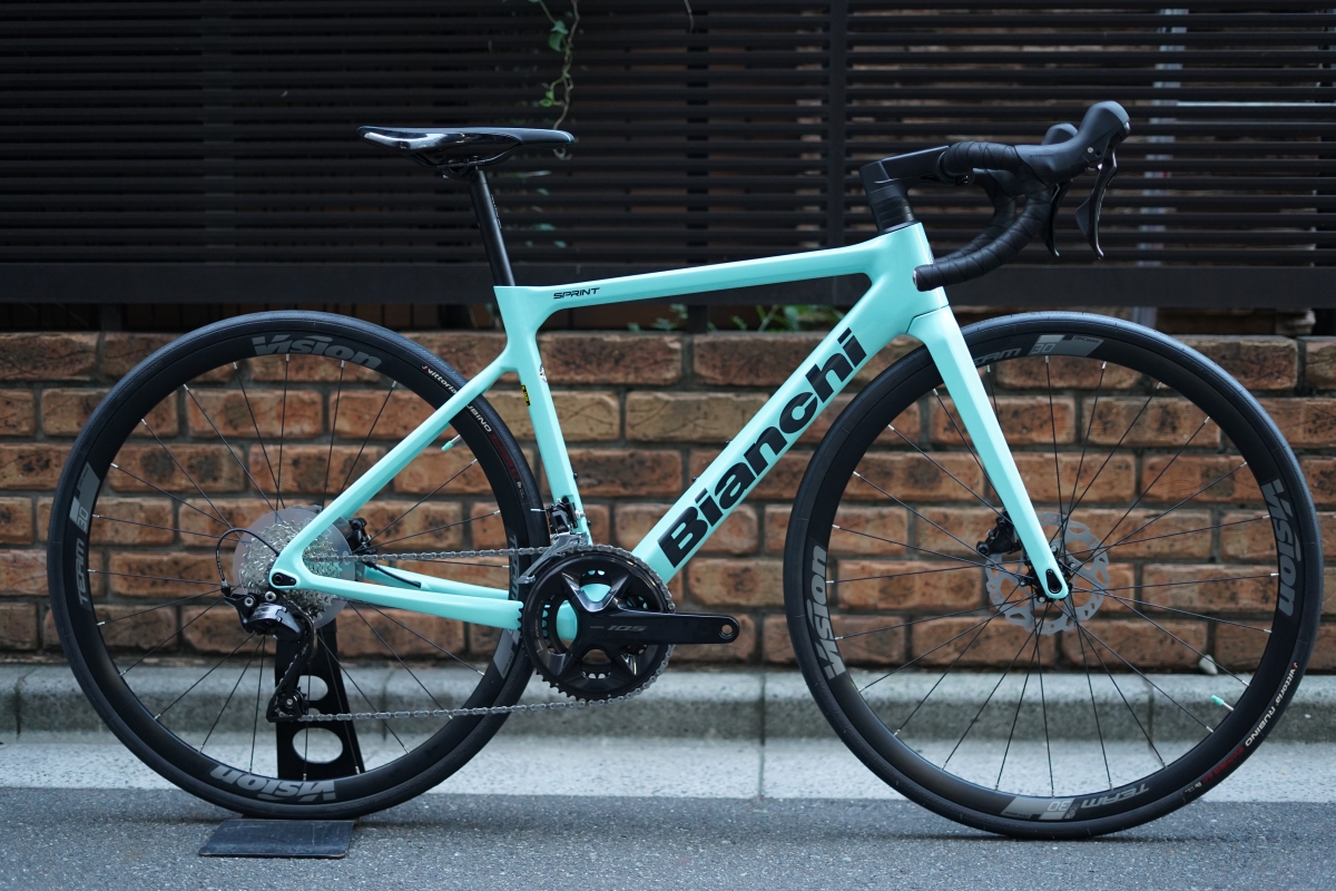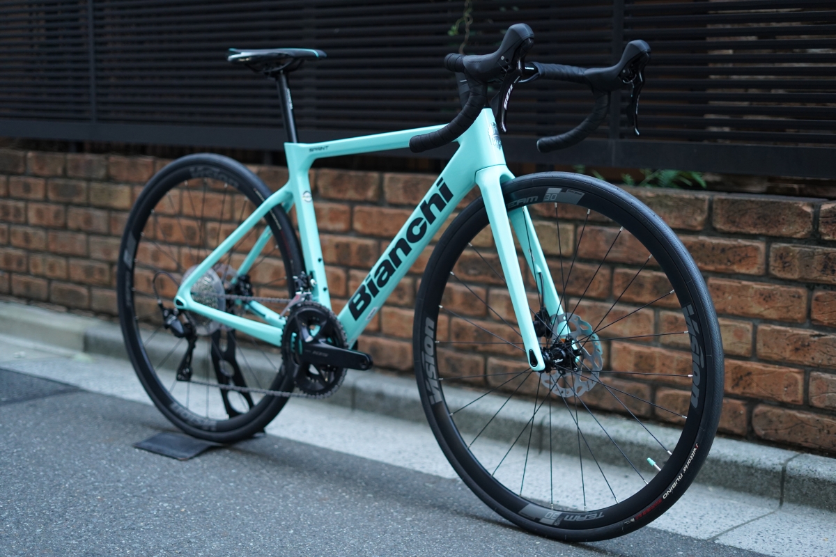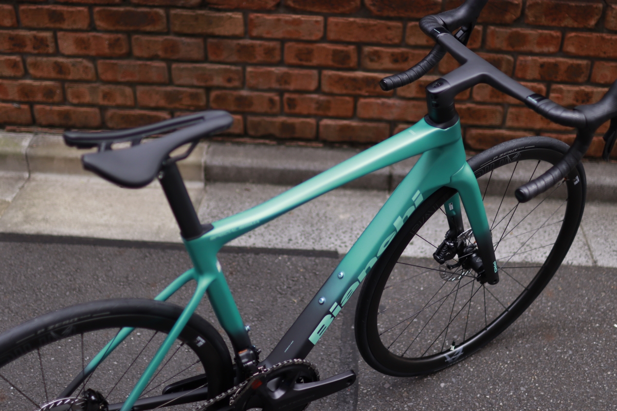 ビアンキの入門カーボンフレーム筆頭格のスプリントDISC。硬すぎず扱いやすい乗り心地と、現代的なフレームワークとケーブルルーティングでスタイリッシュな見た目。