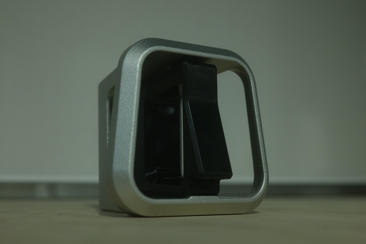文章ではお伝えしづらいのですが、黒い部品を後方に引くことでロック解除となる構造。機能性とデザイン性の両立がお洒落ですね。