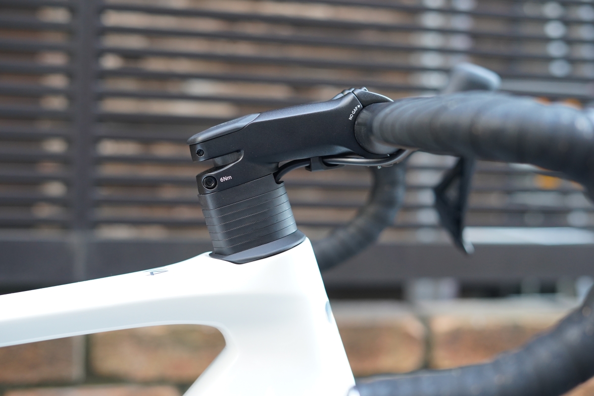 D字型カーボンシートポストに、ウェーブ形状が特徴のサドル「Novus Boost Evo」を装備しています。